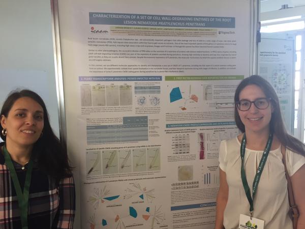 Quatro investigadores do NemaLab/ICAAM - Professor Manuel Mota, Doutora Cláudia Vicente, Margarida Espada e Jordana Branco - participaram no 2º Simpósio SCAP de Proteção das Plantas (8º Congresso da Sociedade Portuguesa de Fitopatologia e 11º Encontro Nacional de Proteção Integrada), em Santarém. Foi realizada uma comunicação oral (Professor Manuel Mota) e duas comunicações em painel (Professor Manuel Mota; Cláudia Vicente e Jordana Branco, na imagem) relativos a trabalhos de investigação realizados no NemaLab. O congresso decorreu na Escola Superior Agrária de Santarém, nos dias 26 e 27 Outubro de 2017.